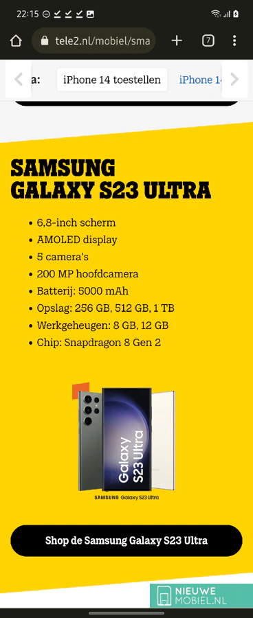 Tele2 has since removed the pages. So we do not know precisely how long they have been online. However, Google indexed them, so we suspect a while. In addition to a general pre-order announcement, the main features of the S23, S23+ and S23 Ultra online.
